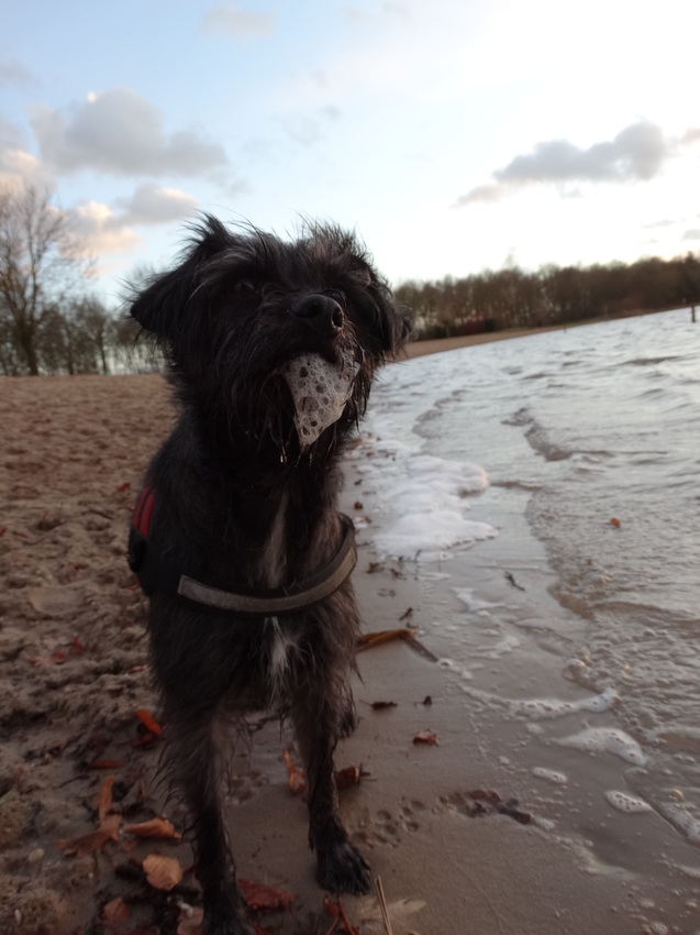 En ook nog een grote vriend (kruising border collie) met leuke bazin aan dit hondenstrandje overgehouden waar we af en toe mee wandelen :)
