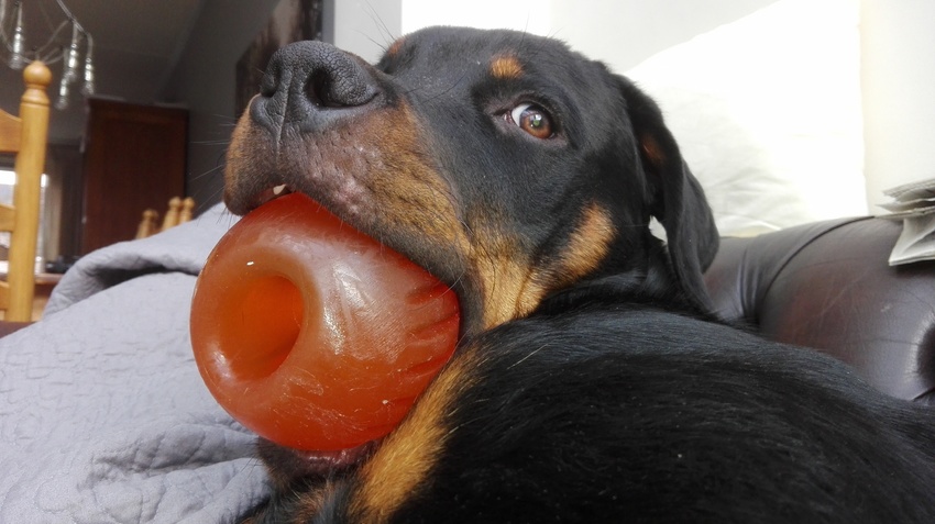 Kaleb en zijn onverwoestbare bal. Naast speel attribuut ook fopspeen![]()