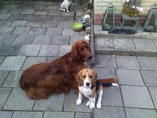 weet niet of de foto duidelijk genoeg is ,maar hier leert Turbo dat Luna mee mag spelen met de flos.