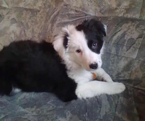 lucky een bw border van 1 jaar oud en onze pup joy en die kleur is nog een beetje vaag op papier staat red merle....