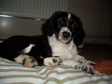 Ze is nu 10 weken oud, ik heb haar vorige week zondag opgehaald. Ze is 3/4 Border Collie en 1/4 Appenzeller Sennenhond.