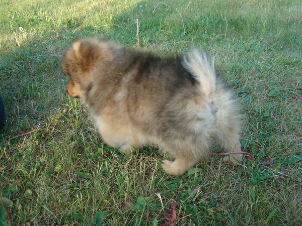 Ik heb er net mijn eerste week bij mijn baasje opzitten. Het is hier reuzefijn! Ik heb een hele grote tuin waarin ik lekker kan dollen. Ik heb ook al even kennis gemaakt met de twee hondjes van de buren. Ik mag er jammer genoeg nog niet mee spelen omdat ik nog een puppyenting moet krijgen. Gisteren ben ik voor het eerst naar de dierenarts geweest. Die zei dat ik kerngezond ben en al 1,2 kilogram weeg. Ik moet wel een beetje minder eten, omdat ik anders later een beetje te dik zal worden. Maar die brokjes en koekjes zijn toch zoooo lekker