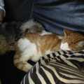 Buddy die nog wel eens gromde naar je als je je staart over zijn kop heen slingerde, die je dan even hautain aankeek.Zo van …frummel…ik lig hier lekker, bekijk jij het maar en gewoon lekker bleef liggen. Buddy deed dat dan ook en elke avond herhaalde zich dit zelfde spelletje!