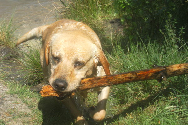 Ik was op mijn gemakje aan het spelen en de stok aan het ophalen die mijn baasje keer op keer weer erin gooide. Ik kan nu dus echt niet tegen watervervuiling en was dan ook van mening dat hij er iedere keer weer uit moest. Was er heel druk mee en op een gegeven moment werd ik het moe. Doe het zelf maar eens!! Ik keek om mij heen en toen zag ik iets lolligs. Ik zag mensen die zich uitkleedde in ons verstopplaatsje. Ik ging er naar toe en zag hoe ze hun zwemkleding aandeden, nu heb ik de mensen wel vaker kleren aan zien doen, dus dat was niet zo vreemd. Maar dat mensen ook in het water stokken gingen rapen om zo het water niet te vervuilen, dat was nieuw voor me. Ik dacht dat ik beter even mee kon gaan, om hen het beste plaatsje te laten zien om de stokken te pakken. Ze kunnen namelijk nog wel eens steken in de mond en dat doet zeer!! Ze luisterden niet en negeerden alle stokken, heel vreemd!! Ineens deed een van die mensen iets op zijn hoofd en warempel, ik wist niet waar ik het had, maar hij veranderden in een bal.