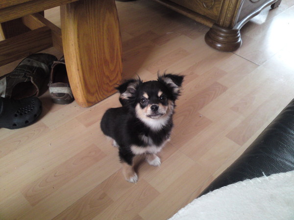 Hij gedraagt zich ook als een echte pup; eigenwijs maar tegelijkertijd HEEL lief! Wat zijn we blij met onze Chihuahua zeg!