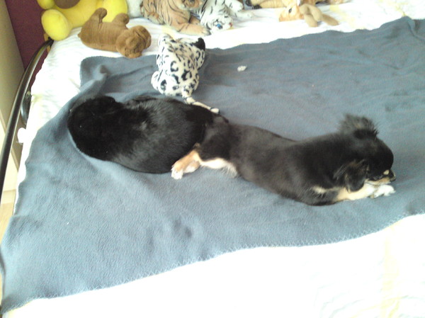 Maargoed, Gizmo is 2,5 kilo en alles is helemaal zoals het hoort. Zijn puppy-vachtje gaat er nu af dus hij zit zich echt de tering te krabben nu. Héél zielig maar niks aan te doen helaas. Gelijk even gevraagd of 't kwaad kan dat hij al de trap af- en op loopt, en het antwoord was 'nee'. Kan dus geen kwaad.
