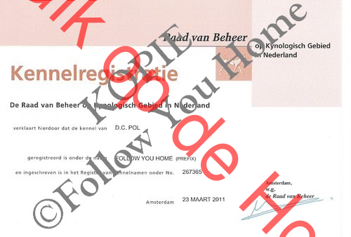 Het fokbeleid van Follow You Home is door de HondenPage bekeken en goedgekeurd. Dit betekend dat wij vinden dat Follow You Home een goed fokbeleid voert, goed voor zowel de pups als moederhond zorgt, verstand heeft van fokken en openheid heeft gegeven van het fokbeleid.