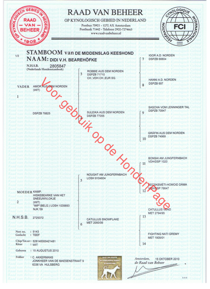Deze fokker heeft aangegeven altijd met honden te fokken die een stamboom hebben. Vraag hier gerust naar bij uw bezoek aan deze fokker !