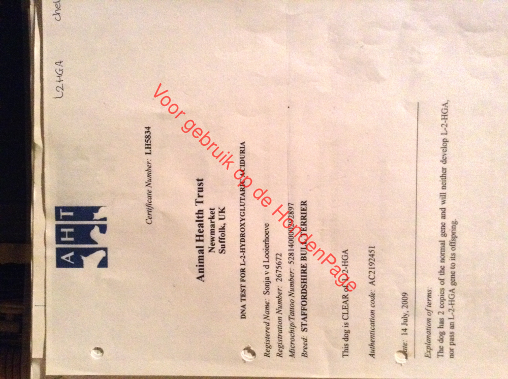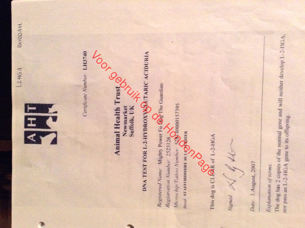 Alle honden en/of hun beide ouders zijn getest op l2hga en hc en vrij bevonden