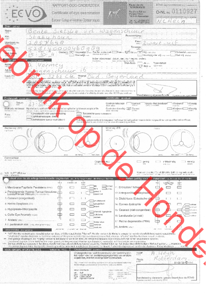 Wij fokken nu met Bente Sietske van de Wagenschuur (2,5 jaar). Verwacht eerste nest eind april 2014