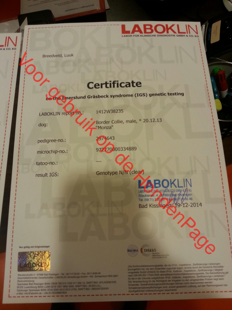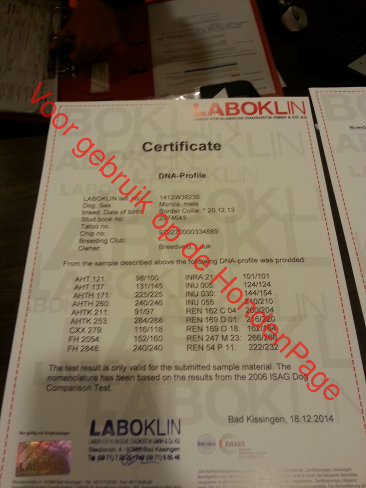 ik heb 1 reu, welke momenteel getest wordt om ingezet te mogen worden als dek reu, hij is nu 13 maanden oud dus nog niet alle testen zijn gedaan.
