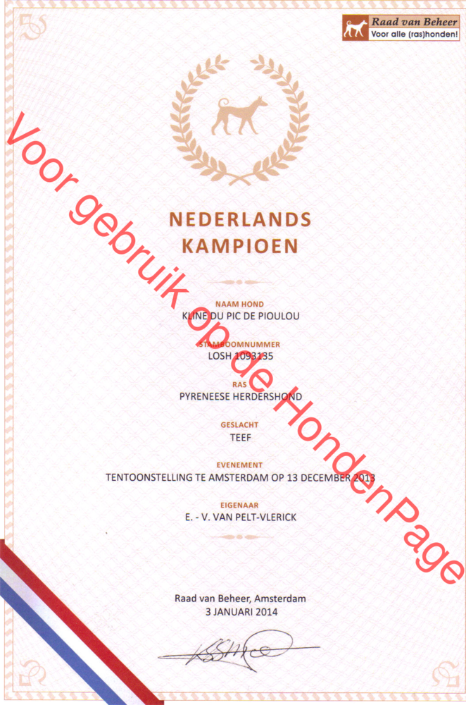 Ch. Kline Du Pic De Pioulou Nederlands Kampioen (jpg)