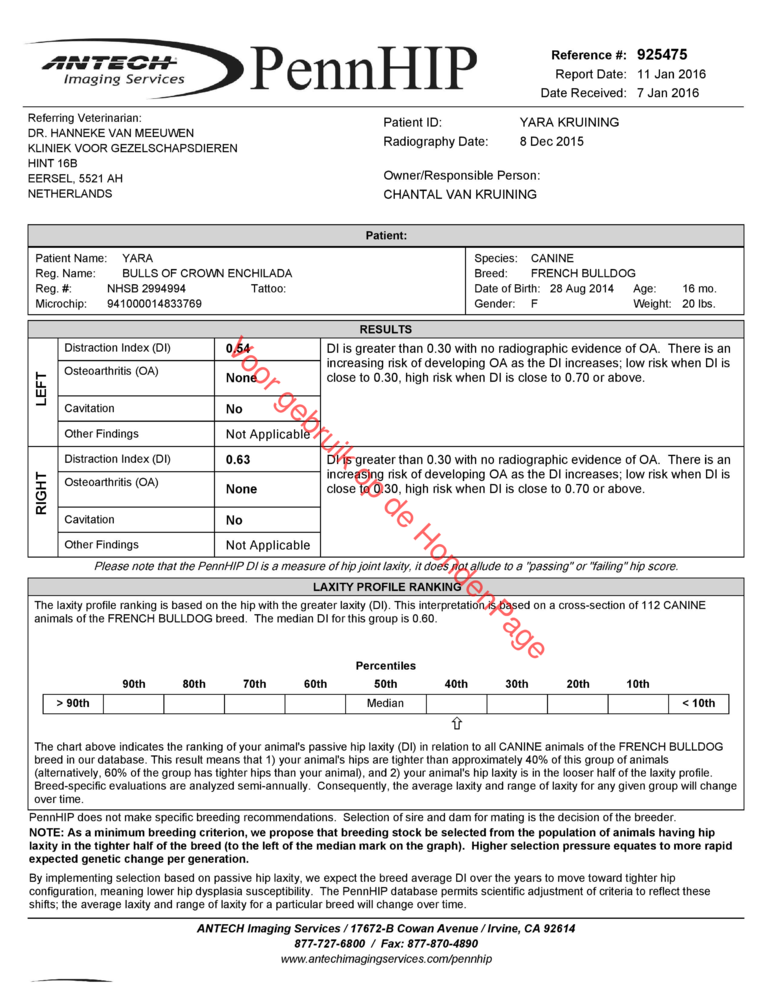 Wij testen onze Franse Bulldogs zeer uitgebreid alvorens we besluiten een nestje te fokken. Testen die ze ondergaan zijn: