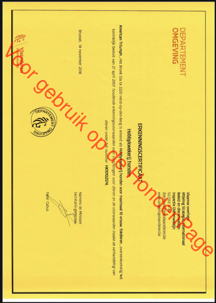 Deze fokker heeft aangegeven altijd met honden te fokken die een stamboom hebben. Vraag hier gerust naar bij uw bezoek aan deze fokker !