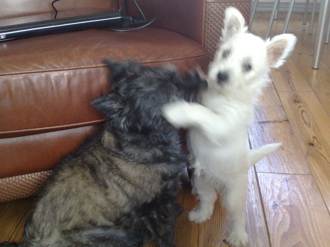 Samen met baasje de auto wassen, Amy helpt een pootje mee, ook haar bekje zoals je ziet.