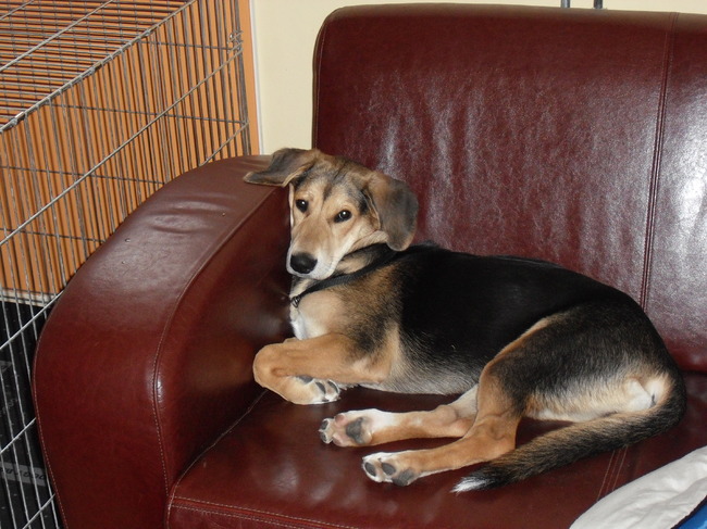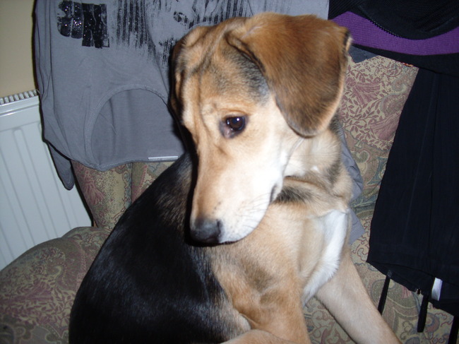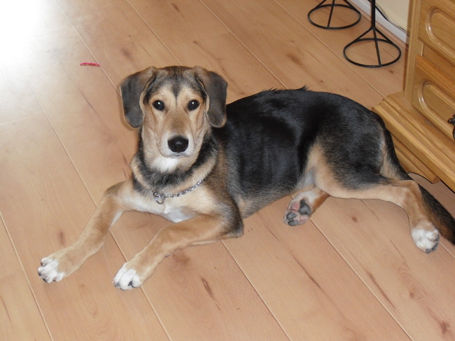 Dit is onze Doenja, een kruising Husky-Beagle. Ze is van 7 april 2010, het leuke aan haar zijn haar oren, staan alle kanten op behalve de juiste hihi. En ze is ontzettend lief, begint al goed te luisteren (wanneer madam zin heeft). Verder is ze heel onderdanig naar mij toe. Ze is gewoon ons lieve meisje.