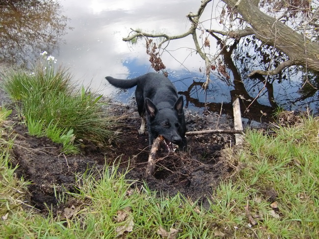 Alsof die plas al niet helemaal geweldig was, vind ik ook nog eens een GROTE stok! Wauw mijn dag kan niet meer stuk!:D