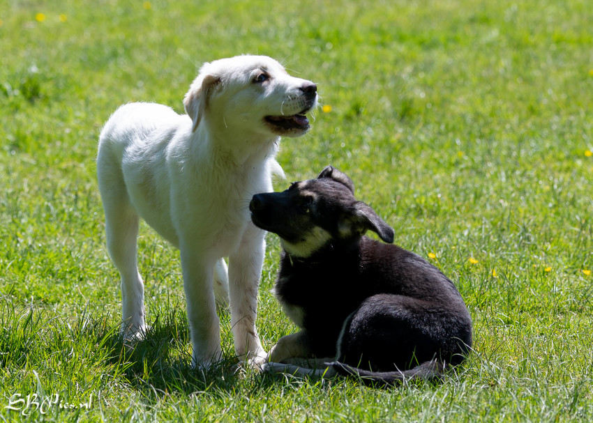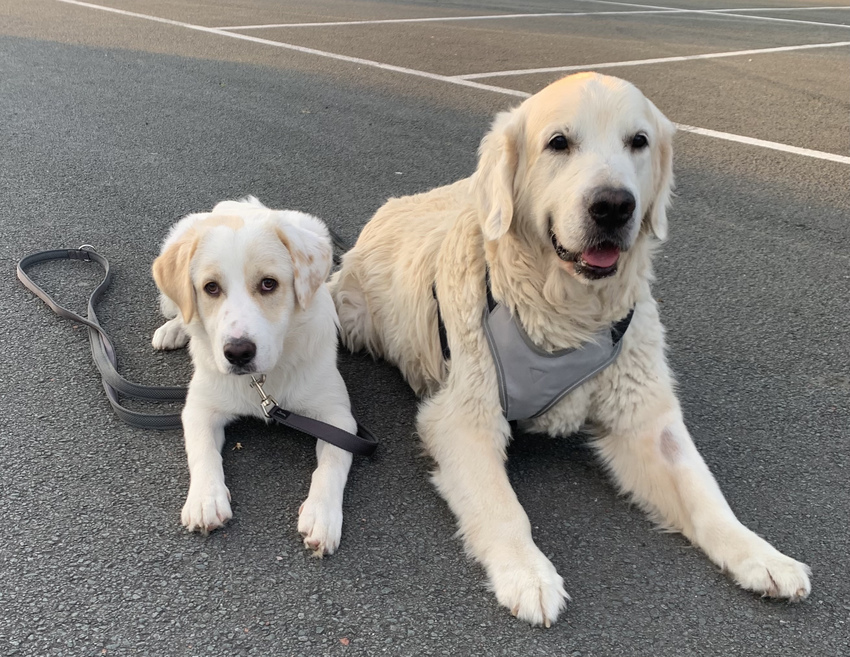 Kenji Golden Retriever bijna 11 jaar en Luna Grieks Zwerfhondje 4 maanden