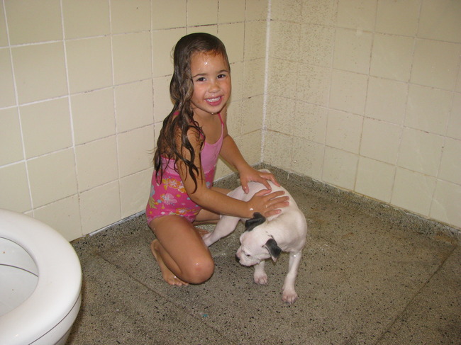 Honden foto's > alex en lady > samen na middagje park onder de douche