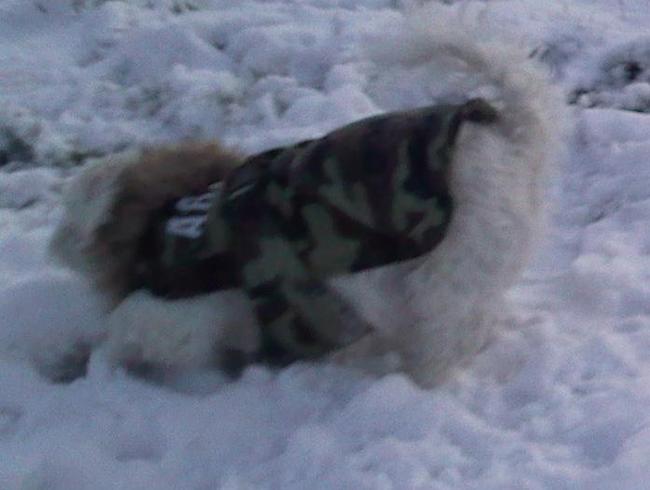 Honden foto's > Dominique en Gucci > lekker frutten in de sneeuw