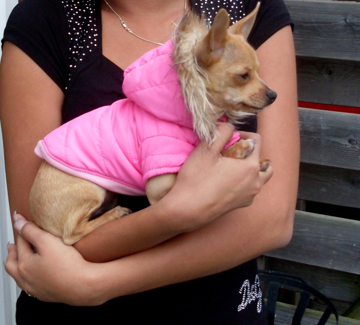 Honden foto's > Bonita > Mijn kleine meid met een leuk roze en lekker warm jasje voor tegen de koude dagen