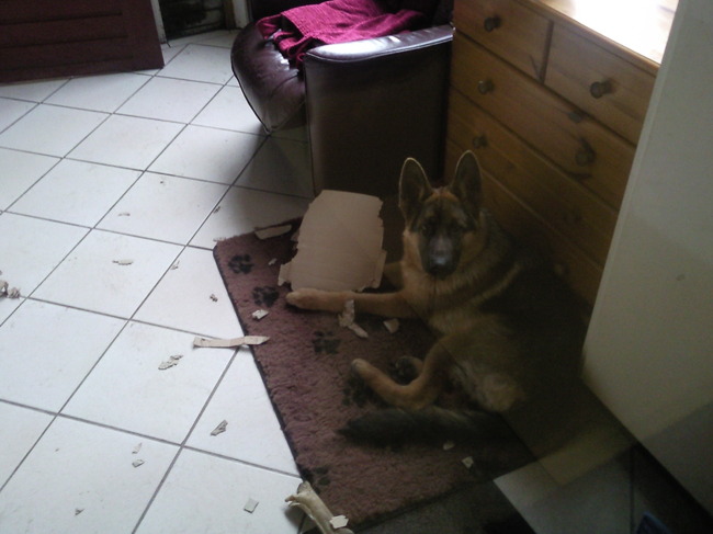 Honden foto's > Nina > OPS, betrapt, wat een rotzooi!