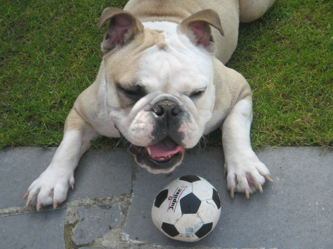ons bertha aan het spelen in de tuin van meme van petra ,bertha en boomer