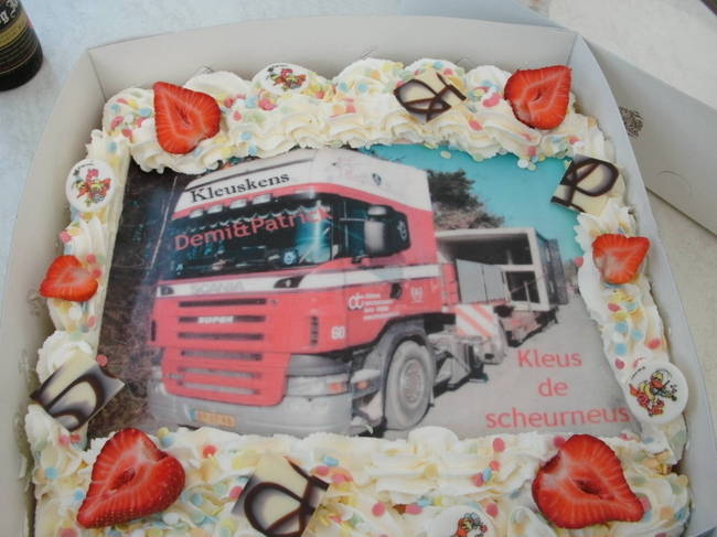 > Verjaardagskadootje voor Patrick. Helaas was Dewi te moeilijk en had de bakker er Demi van gemaakt
