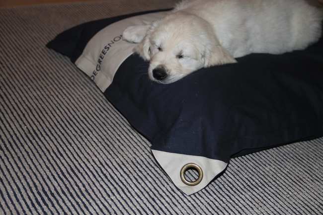 Fijn, dat er eindelijk een hond op het mooie 15 degrees north-kussen ligt van Trijneke
