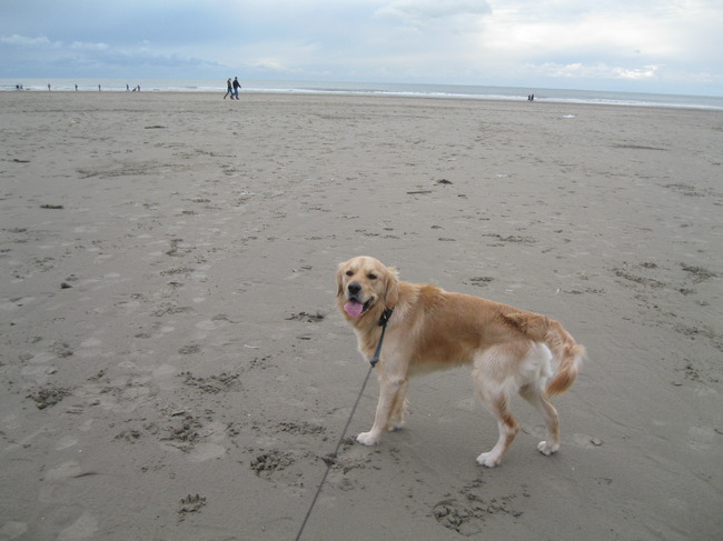 Honden foto's > Mariska en Jip > Voor het eerst op het strand...wat is het hier groot!
