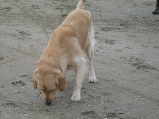 Honden foto's > Mariska en Jip > Voor het eerst op het strand...wat een feest!