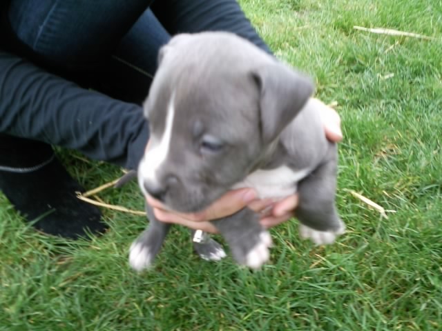 Honden foto's > leonie > eerste kennismaking met Tank ( 4 weken)