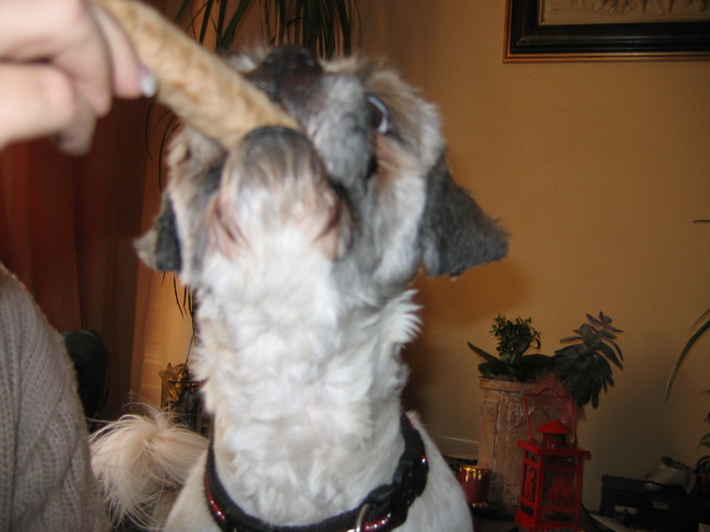 Honden foto's > Patrick en Feyro > Die rauwe frikadel lust ik wel hoor