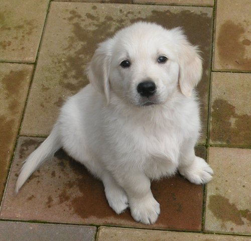 Honden foto's > Sandra > Kenji 8,5 week en lekker in de tuin