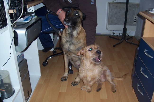 Honden foto's > omasandra > Lady en Rembo in de nieuwe studio van de baas