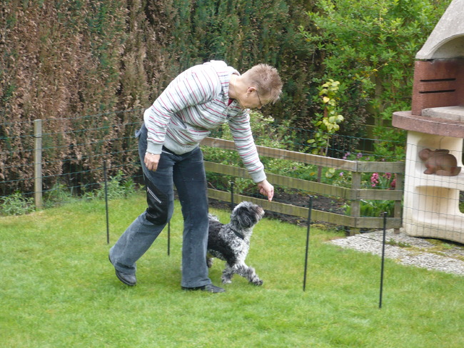 Honden foto's > Dina > samen met mijn vrouwtje aan t trainen voor de behendigheid in de tuin