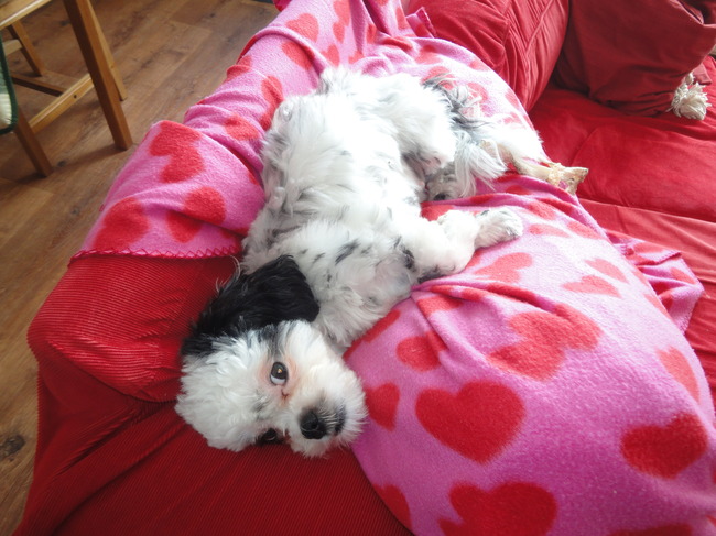 Honden foto's > Natasja > Als je slaapt denk je dat ze je met rust laten.Altijd maar die foto camera.Bah.