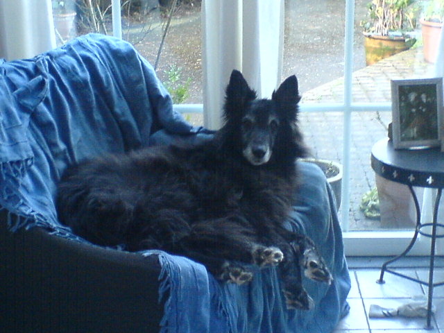 Honden foto's > harley en jacx > net wakker en nog in bed