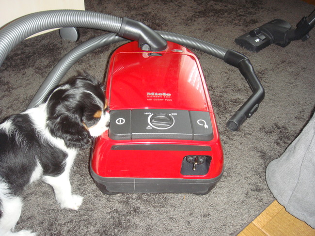 Honden foto's > Kelly en Scylla > Scylla helpt stofzuigen