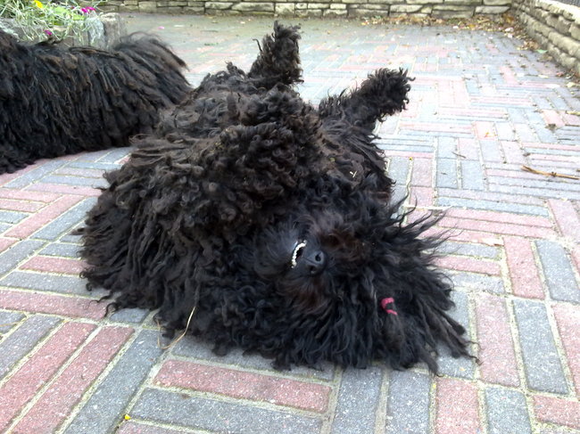 Honden foto's > Ute > Zo lig ik, Nicki, altijd op mijn rug. Ben ik dan niet schattig ?