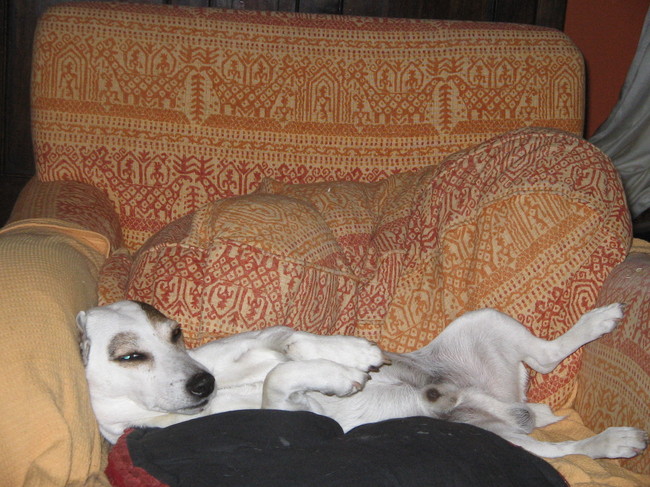 Honden foto's > Marlies > Spikey lekker lang uit op de stoel
