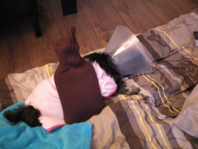 > de volgende ochtend na de sterelisatie.. nog erg duf en in de war.. maar hier ligt ze even lekker