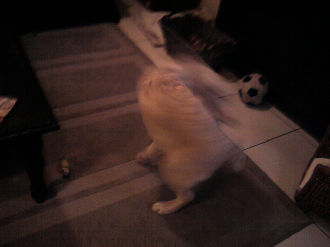 Mijn hobby: Achter mijn staart aan rennen natuurlijk! Omdat mijn staart best wel lang is heb ik hem meestal meteen in mijn mond. Dan ga ik dus met mijn staart in mijn mond wat rondjes lopen en tegelijkertijd zo een beetje tegen de kast aanlopen en af en toe over voeten van de baasjes struikelen. Ik vind het geweldig! =D van Sem en Nala <3