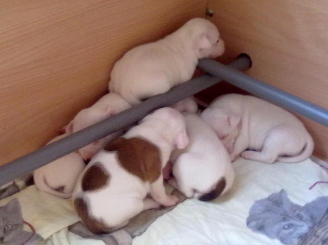 Honden foto's > martijn-kayleigh > 1 broer en de rest zijn allemaal zussen. kayleigh bovenop de berg pups
