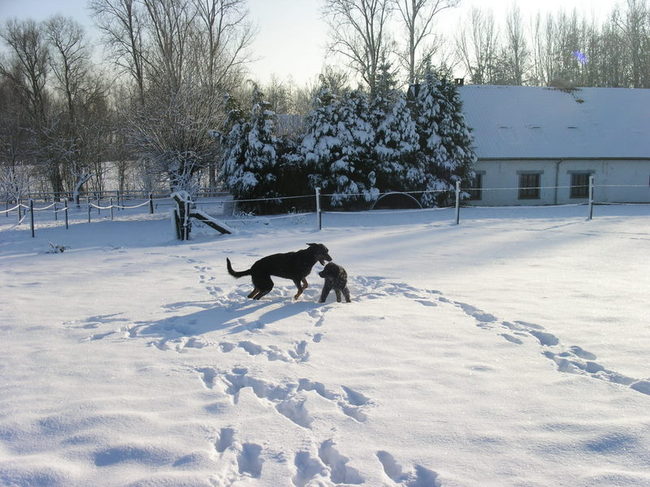 Honden foto's > Gaelle > Aisha duikt op Dax xD