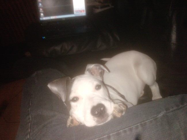 Honden foto's > alex en lady > lekker bij de baas op de bank