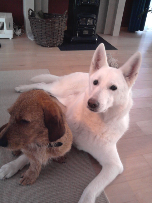 Honden foto's > Kobus & Cas > Kobus kruipt iets dichterbij, om vervolgens...