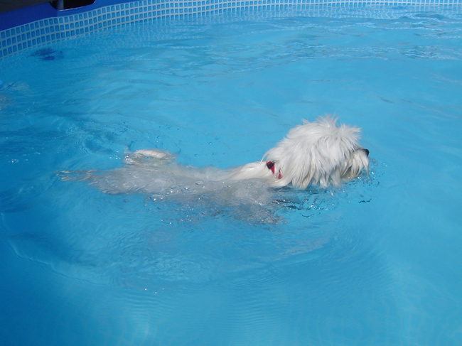 Honden foto's > nancy > kyra is gek van zwemmen en springt constant het zwembad in