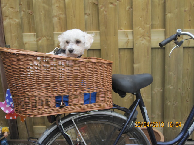 Honden foto's > Jennifer, Timo en Toby > Timo in de Fietsman