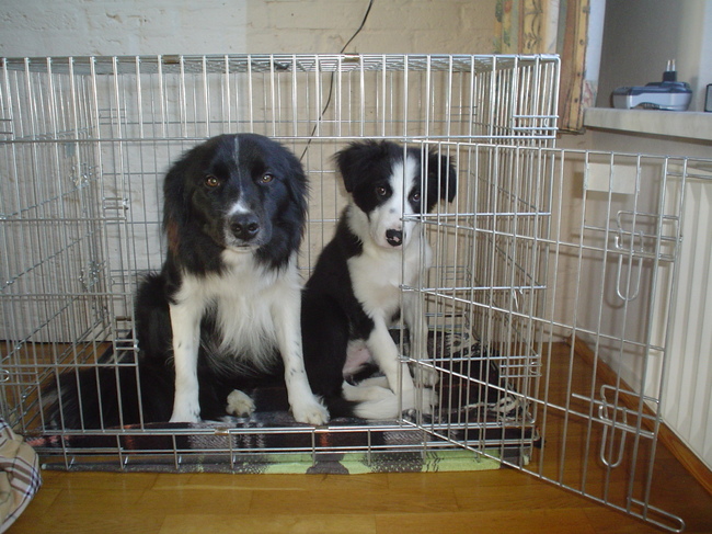 Honden foto's > Gerrie en Cas > Met Puck in de bench